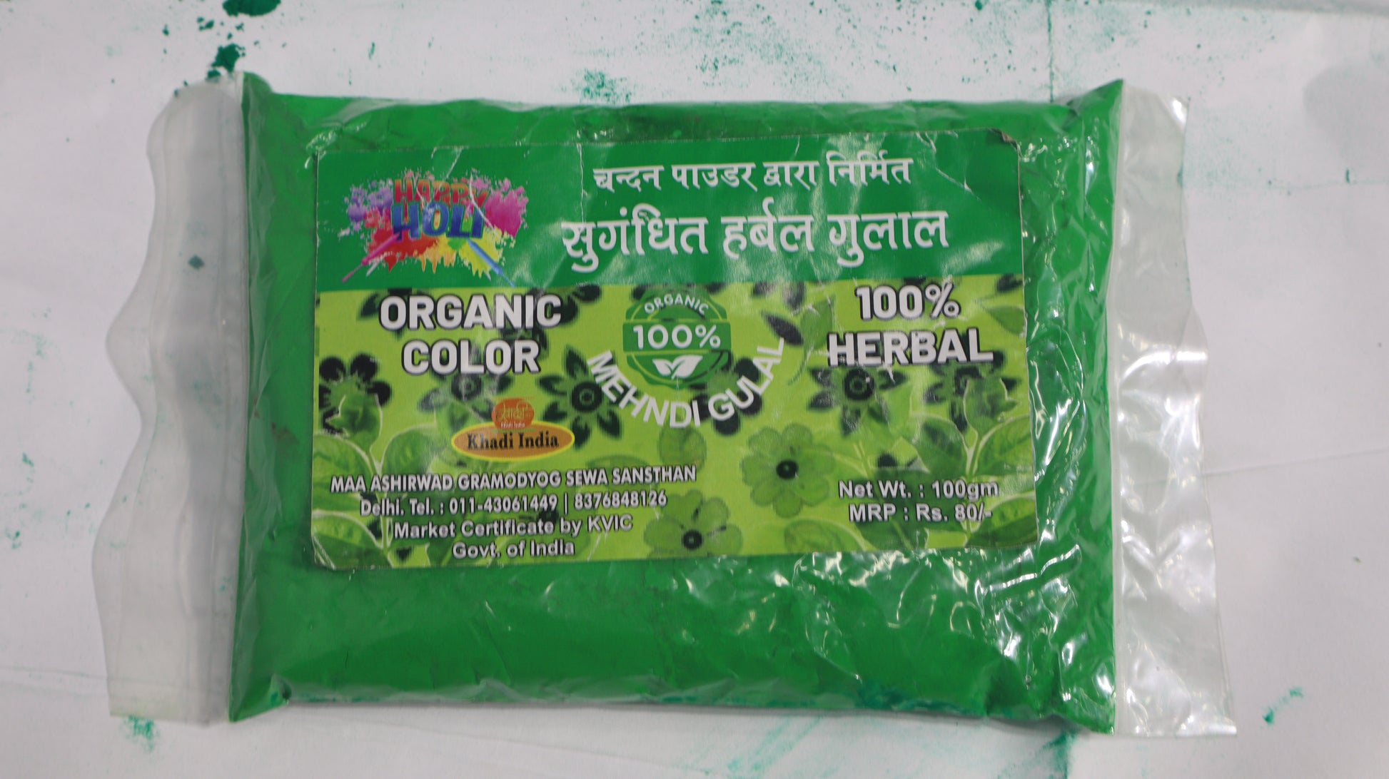 Adhunik Swadeshi Bhandar Organic Mehndi Gulal – 100% Herbal & Natural Holi Color (100g)