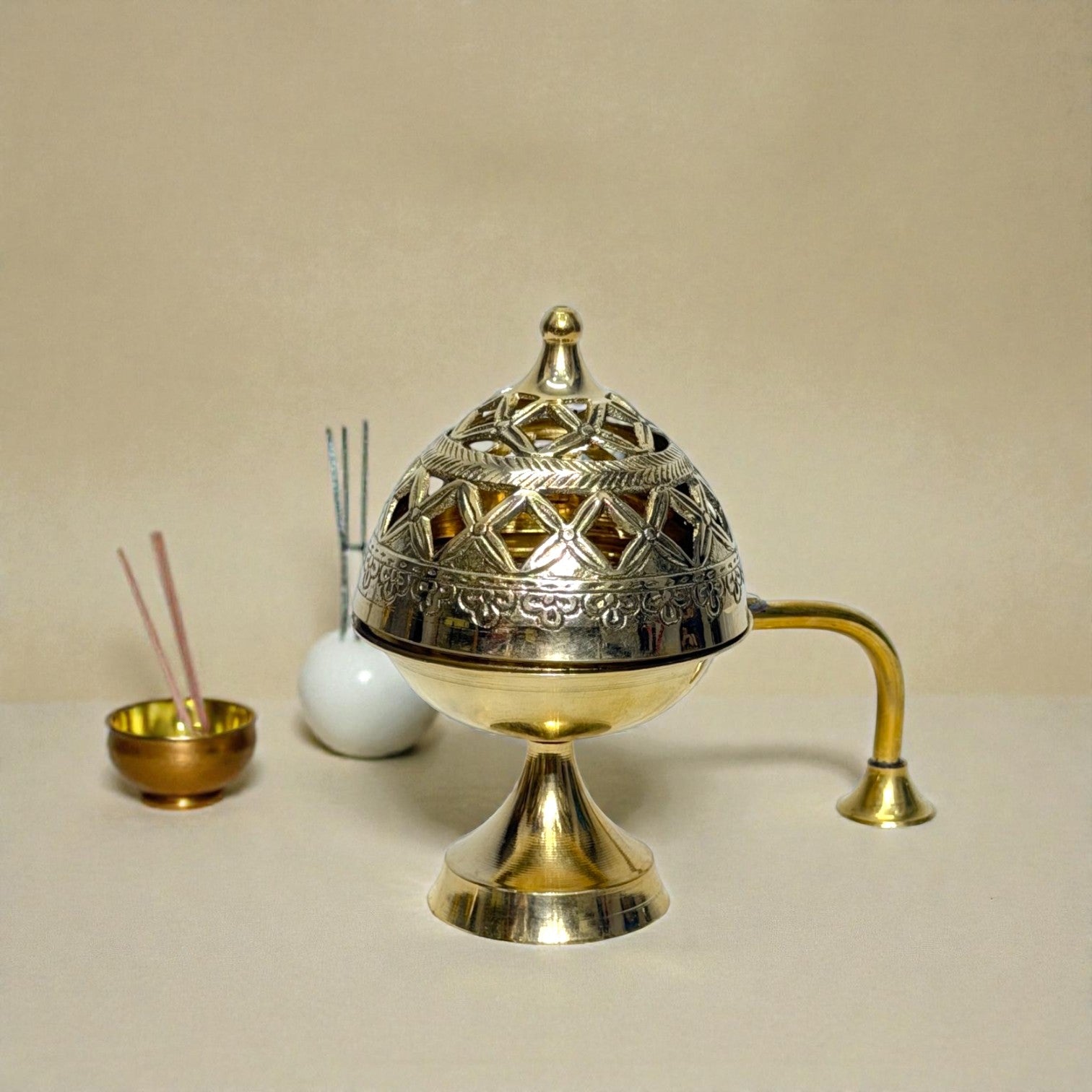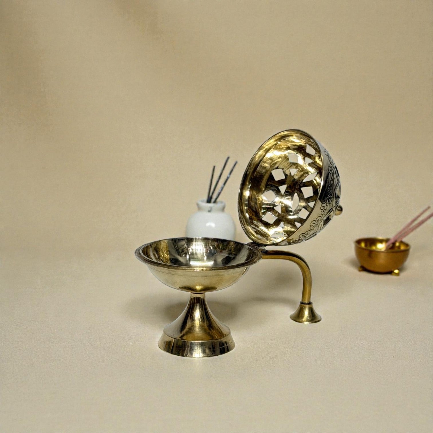 Adhunik Swadeshi Bhandar Brass Dhoop Dani with Handle | Incense Burner | Pooja & Home Fragrance