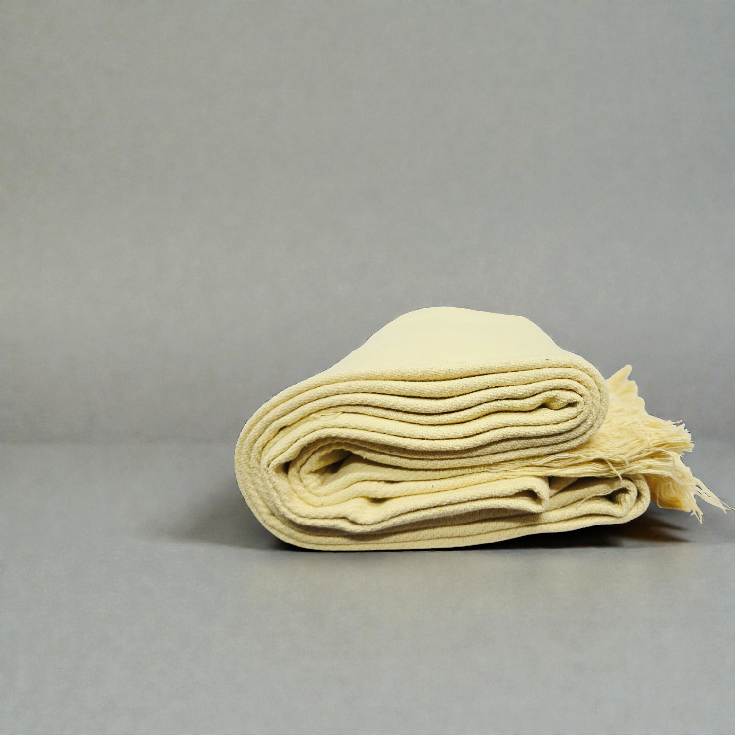 Premium Cream Khadi Cotton Khesh – Solid Handwoven Heavy Blanket / Throw with Fringes