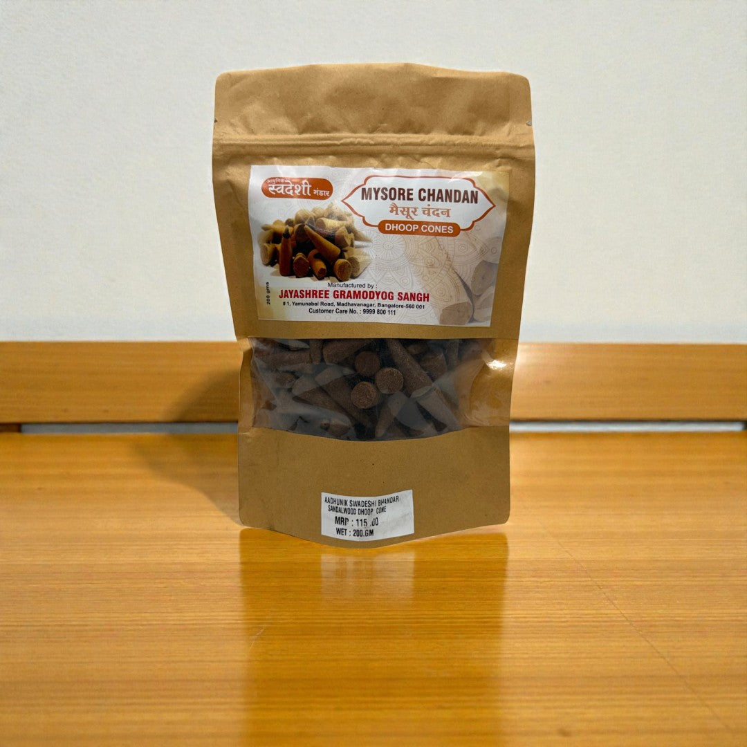 Adhunik Swadeshi Bhandar Mysore Mogra Dhoop Cones are crafted to spread the rich and refreshing fragrance of mogra flowers. Inspired by traditional Mysore incense-making techniques, these dhoop cones create a calming and spiritually uplifting environment.