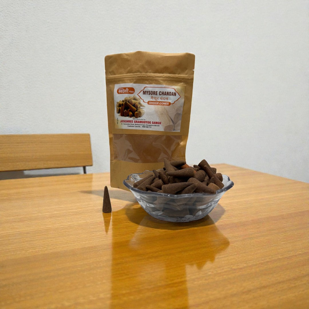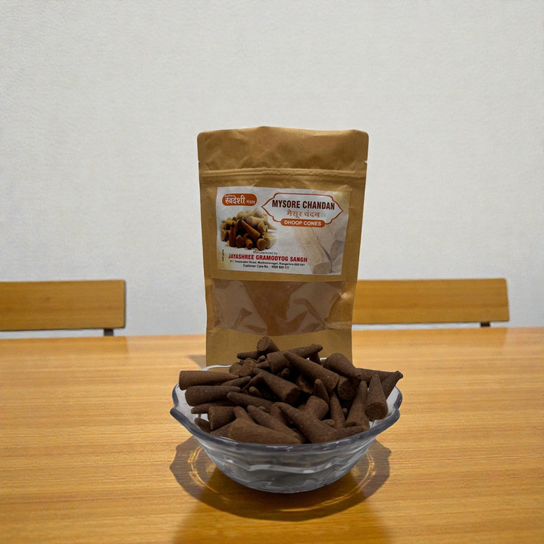 Perfect for home temples, meditation rooms, prayer spaces, and spiritual rituals, Mysore Mogra Dhoop Cones combine traditional incense craftsmanship with a soothing floral fragrance.