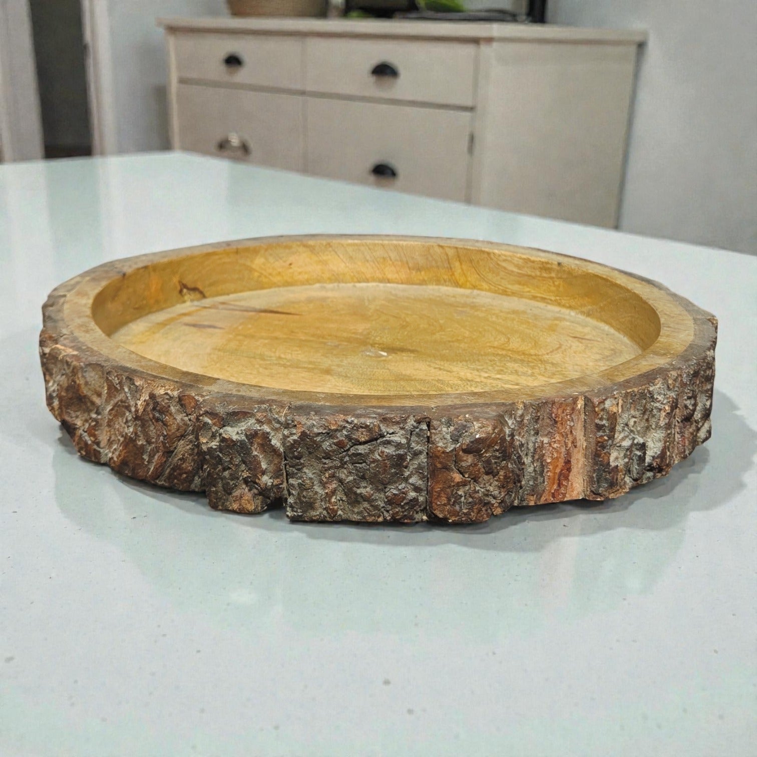 Natural Wooden Tree Cutout Tray – Round Rustic Wood Serving & Decor Tray