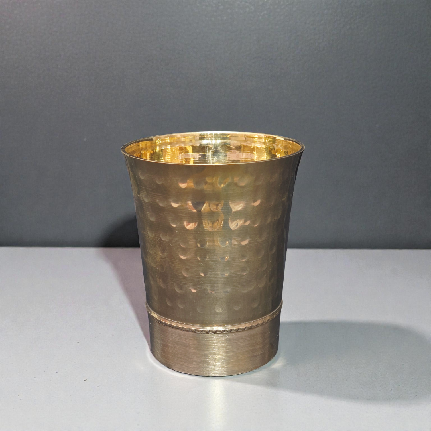 Handcrafted Pure Brass Hammered Glass – Traditional Textured Pital Tumbler for Water, Lassi & Ayurvedic Wellness