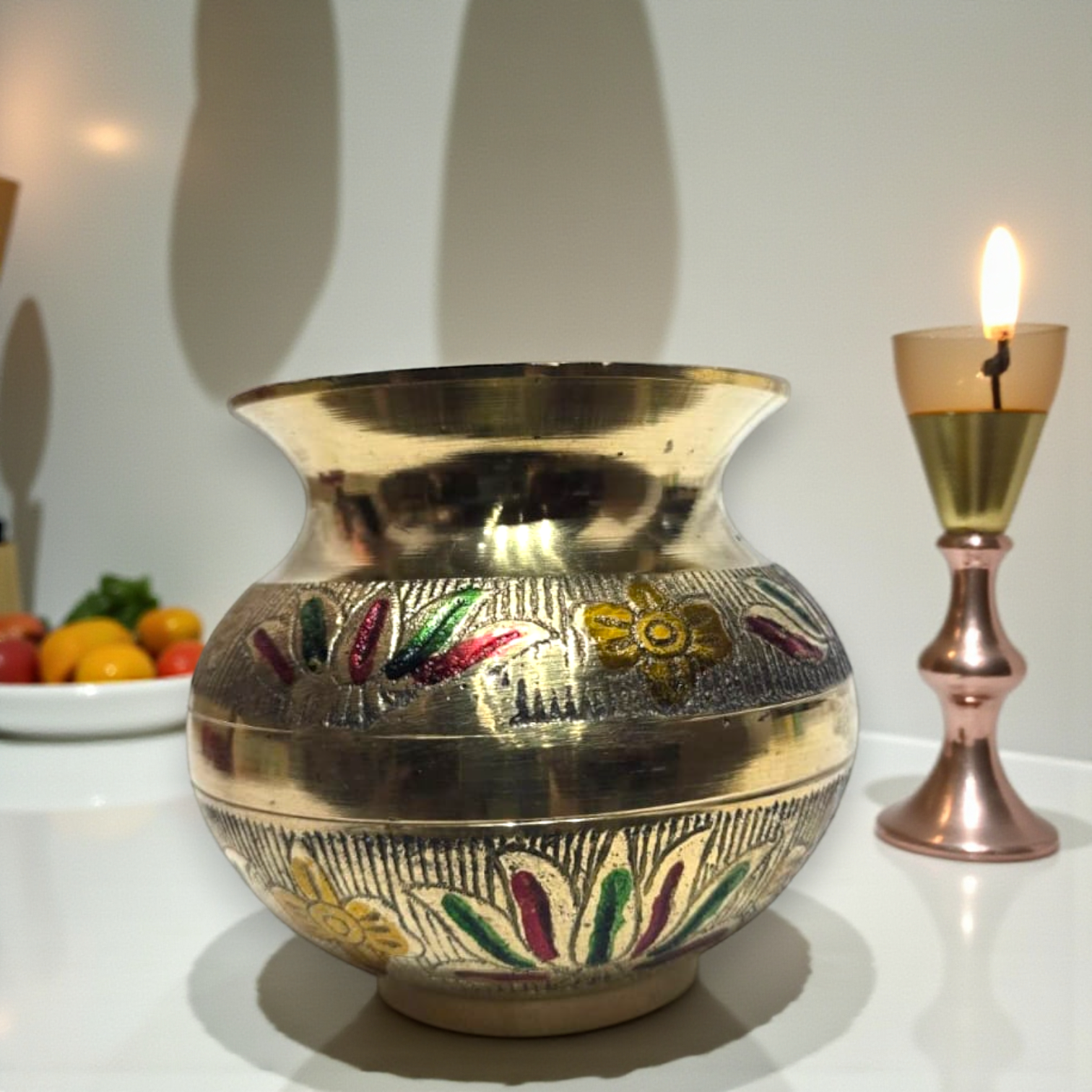 Pure Brass Pooja Lota | Handcrafted Engraved Kalash for Daily Puja