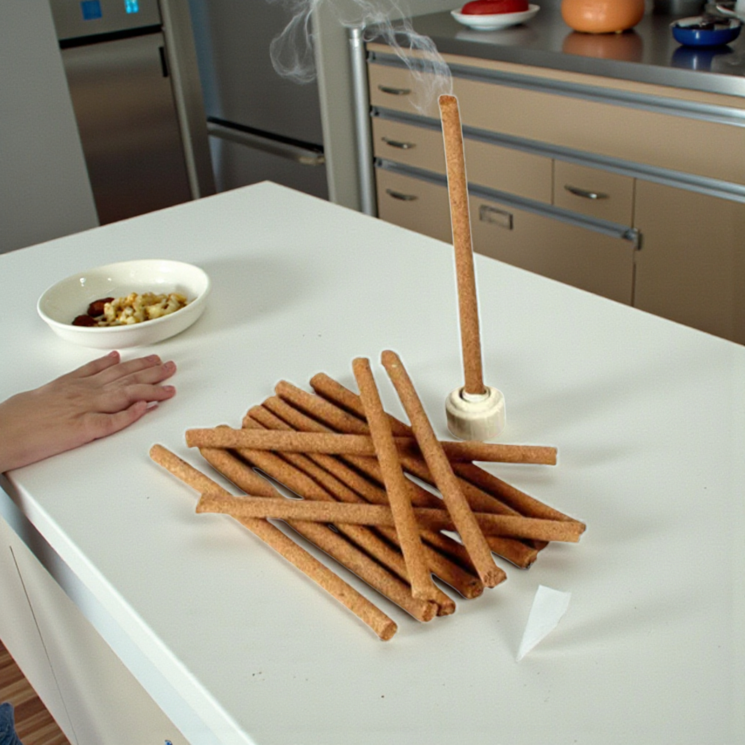 ✨ Free Holder Included: Each pack comes with a specialized heat-resistant stone/concrete holder, ensuring the dhoop stick stands upright and burns safely without making a mess.