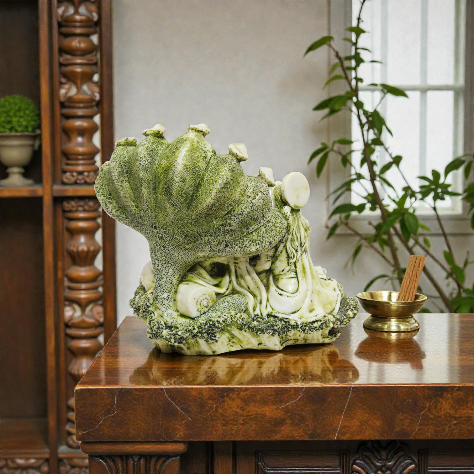 Meticulously detailed and finished with vibrant colors (or antique gold/bronze finish), this idol captures the divine calmness of the Kshira Sagara (Ocean of Milk). It serves not only as a centerpiece for your Pooja room but also as a powerful Vastu remedy to attract peace, protection, and abundance.