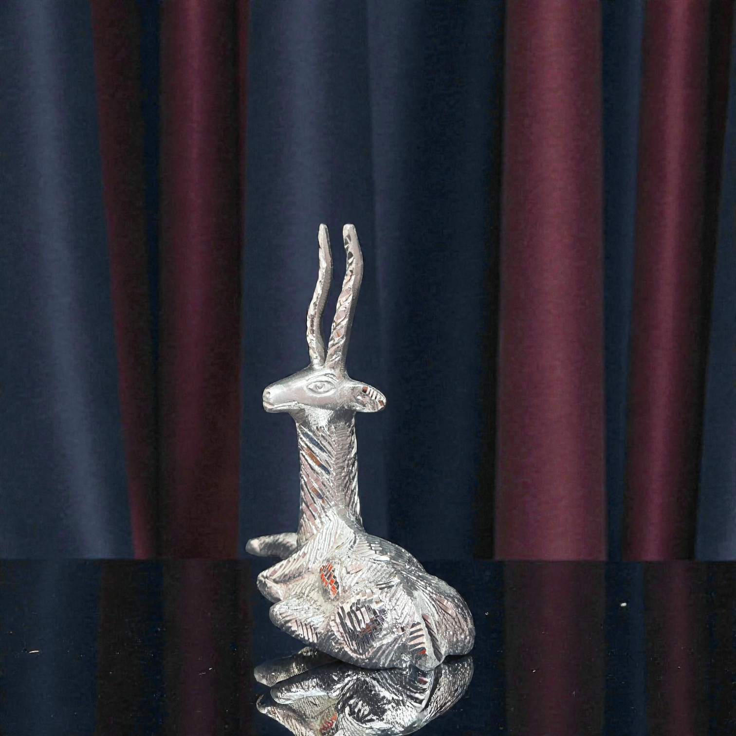 Elegant White Metal Sitting Deer Showpiece – Decorative Antelope Figurine with Silver Finish for Home & Office Decor